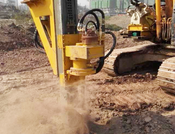 2、前后左右自由伸展,當挖掘機在工地不平坦的情況下, 挖機手可根據位置不同調整鉆桿角度,保持90°垂直鉆孔。