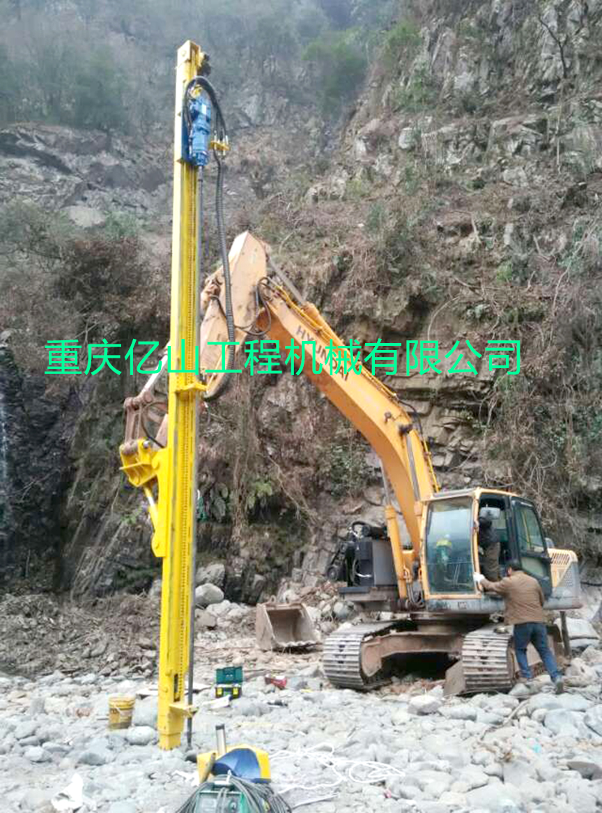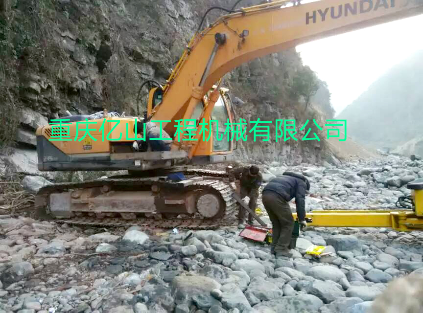 四川雅安現代挖機改全液鑿巖鉆機工地現場