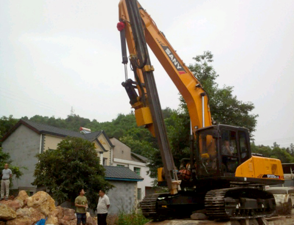 2、前后左右自由伸展,當挖掘機在工地不平坦的情況下, 挖機手可根據位置不同調整鉆桿角度,保持90°垂直鉆孔。