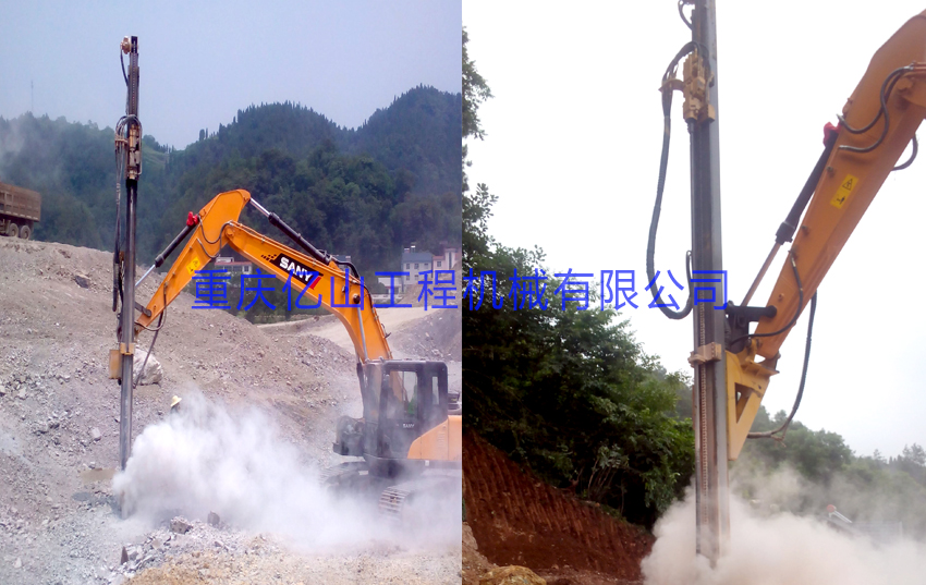 1、安裝拆卸方便。挖掘機小臂不用拆卸,不影響挖掘機自身功能,直接類似掛破碎錘一樣,管路系統都可以共用,真正實現一機五用并互換:挖土、破碎錘、切削鉆、鑿巖機、潛孔鉆。拆卸時間和換斗時差不多,約10-20分鐘。