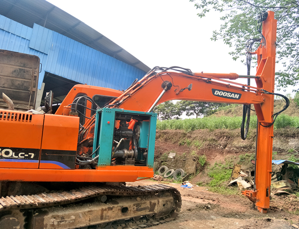 2、前后左右自由伸展,當挖掘機在工地不平坦的情況下, 挖機手可根據位置不同調整鉆桿角度,保持90°垂直鉆孔。