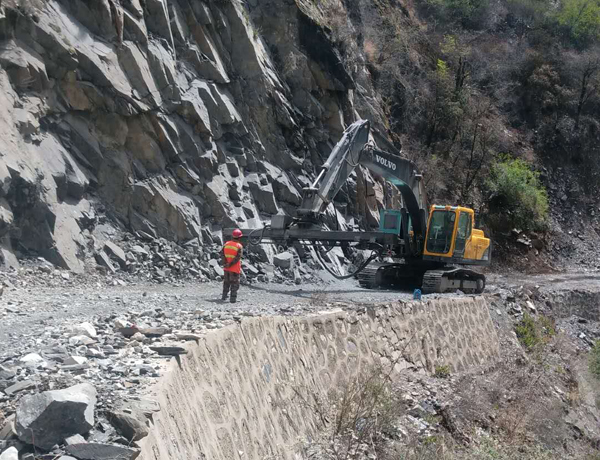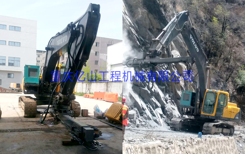 億山ES300挖改全液壓鑿巖機,廣泛適用于花崗巖、石灰石、大理石、火山石、青石、玄武巖等硬度較高的堅巖石的各種爆破前鉆孔作業(硬度F大于6級);可以借助挖機的操作靈活性用于錨桿鉆孔;也遠遠低于一體式鑿巖鉆機的采購價格。具操作簡易,設計人性化,感觀直接,實現挖掘機一機多用等特性。