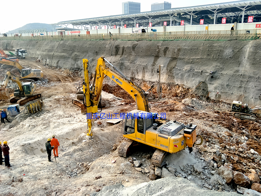 江蘇徐州-徐工XE215挖機改全液壓鑿巖機(38-54孔4.9米)工地現場