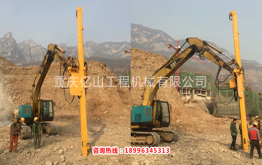 3、作業半徑擴大化 。因為挖掘機小臂不拆,它的作業半徑可以延長作業半徑2-3米,且仰角打孔、豎打孔都可以實現。