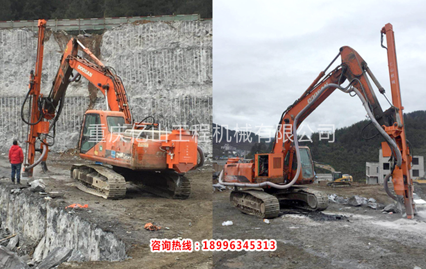 挖機改鉆機,新興施工模式,可白天鉆孔鑿巖,晚上破碎裝運,讓您的挖機24小時無休為您賺錢!咨詢電話:18996345313(秦女士)