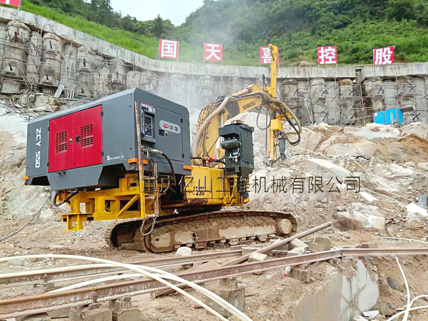 小松230挖機改裝潛孔鉆機帶吸塵150孔3米(接桿)