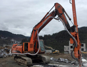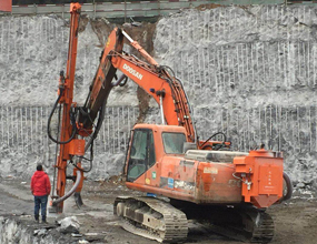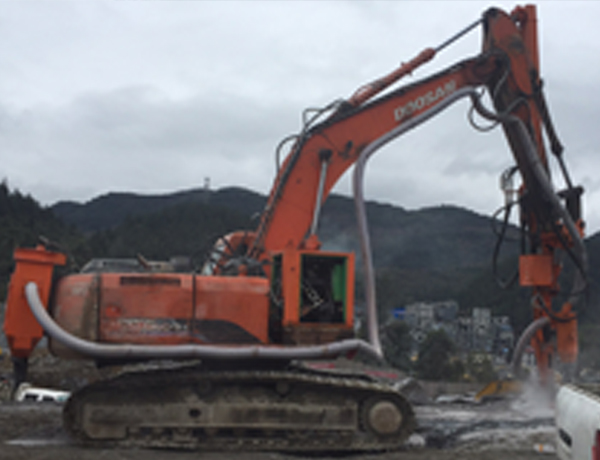 斗山225挖機改裝沖擊鉆(300型),;3.66米+1.525米鉆桿接桿,90孔;3.5立方空壓機;帶吸塵