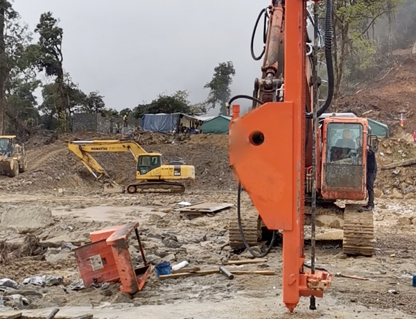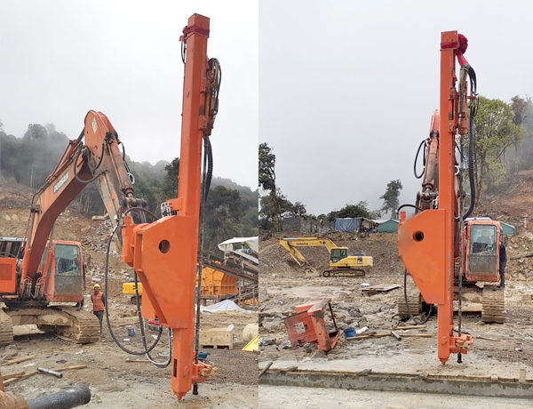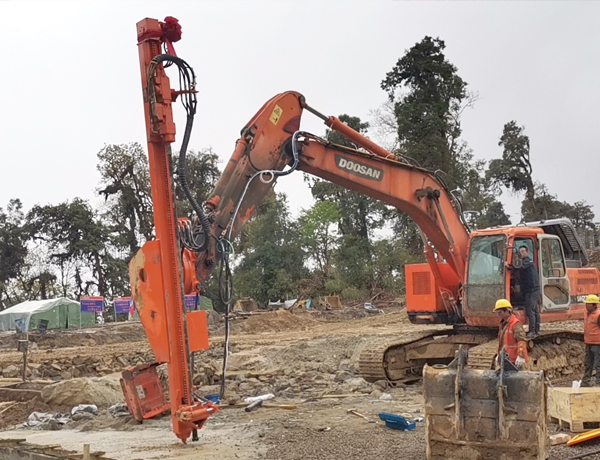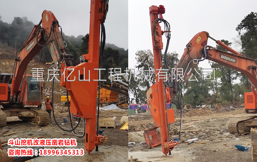西藏墨脫--斗山230挖機(jī)改裝液壓鑿巖鉆機(jī)(90孔3-8米)接桿