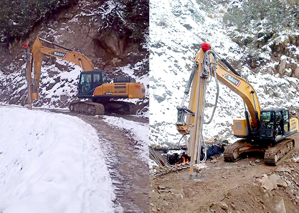 喜馬拉雅山和念青唐古拉山平行伸展,東與橫斷山脈對接。兩大洋的暖流常年交匯,順著世界最深峽谷——雅魯藏布江大峽谷魚貫而入,造就年降雨量650毫米的奇觀。這里的山道高聳入云,“九曲十八彎”。車子上不去,下來的,往往是暴雨夾著滾石。多年來,這里地質災害頻發,一直被視為工程機械的“服務禁區”。
