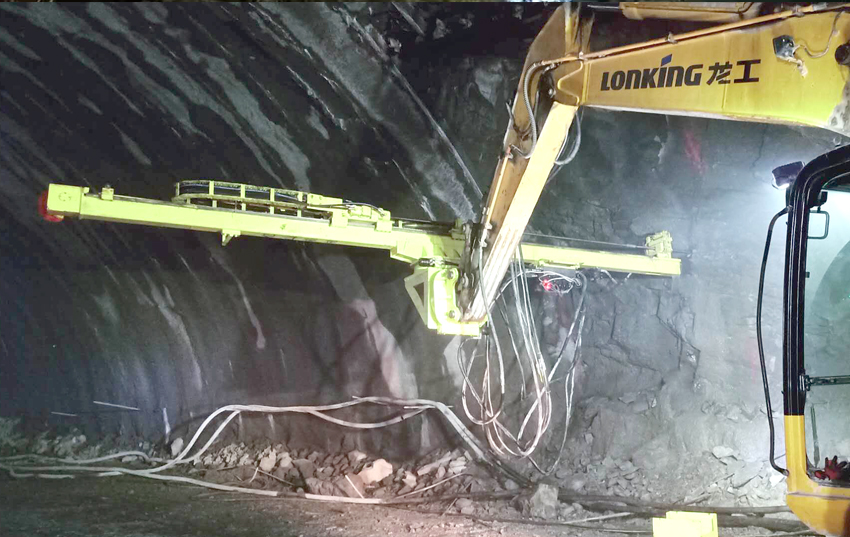 3、作業半徑擴大化 。因為挖掘機小臂不拆,它的作業半徑可以延長作業半徑2-3米,且仰角打孔、水平打孔、豎直打孔都可以實現。