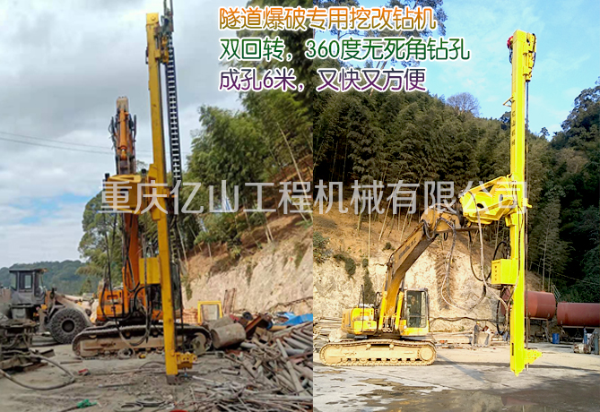挖機改鉆機為您開啟了新的施工方法。挖斗+破碎錘+切削鉆機+鑿巖鉆機+潛孔鉆機,一機多用,為您降低成本。無論您是從事采石業、采礦業、土建工程、鋼鐵工業、隧道工程或路橋工程,在許多傳統方法失效或成本高的地方,您都可以借助這靈活、耐用、噪音小且震動低的特種機器。