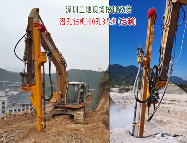 深圳汕尾--卡特挖機(jī)改裝潛孔鉆機(jī)