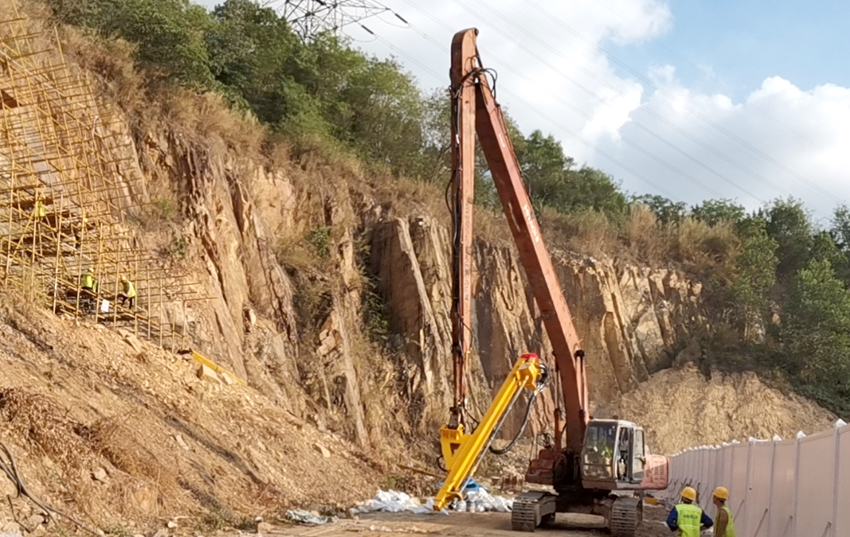 挖機(jī)改鉆機(jī)為您開啟了新的施工方法。挖斗+破碎錘+切削鉆機(jī) +潛孔鉆機(jī),一機(jī)多用,為您降低成本。無論您是從事采石業(yè)、采礦業(yè)、土建工程、鋼鐵工業(yè)、光伏工程、隧道工程或路橋工程,在許多傳統(tǒng)方法失效或成本高的地方,您都可以借助這靈活、耐用、噪音小且震動低的特種機(jī)器。