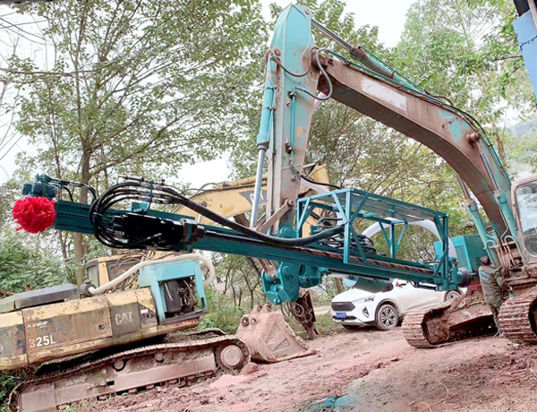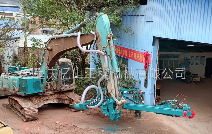 1、安裝拆卸方便。挖掘機小臂不用拆卸,不影響挖掘機自身功能,直接類似掛破碎錘一樣,管路系統都可以共用,真正實現一機五用并互換:挖土、破碎錘、切削鉆、鑿巖機、潛孔鉆。拆卸時間和換斗時差不多,約10-20分鐘。