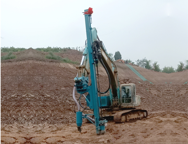 2、前后左右自由伸展,當挖掘機在工地不平坦的情況下, 挖機手可根據位置不同調整鉆桿角度,保持90°垂直鉆孔。