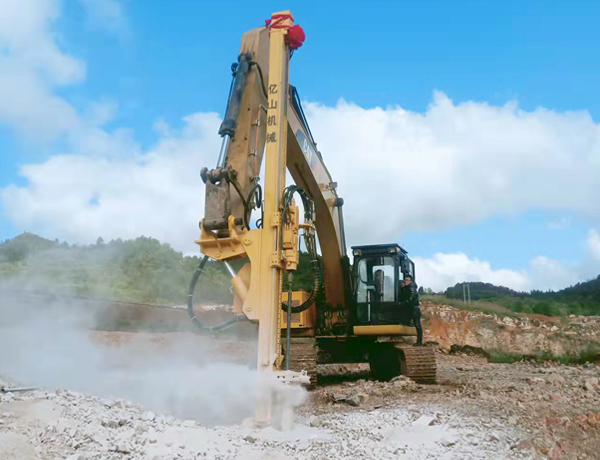 億山ES300挖改全液壓鑿巖機(jī),廣泛適用于花崗巖、石灰石、大理石、火山石、青石、玄武巖等硬度較高的堅(jiān)巖石的各種爆破前鉆孔作業(yè)(硬度F大于6級(jí));可以借助挖機(jī)的操作靈活性用于錨桿鉆孔;也遠(yuǎn)遠(yuǎn)低于一體式鑿巖鉆機(jī)的采購(gòu)價(jià)格。具操作簡(jiǎn)易,設(shè)計(jì)人性化,感觀直接,實(shí)現(xiàn)挖掘機(jī)一機(jī)多用等特性。