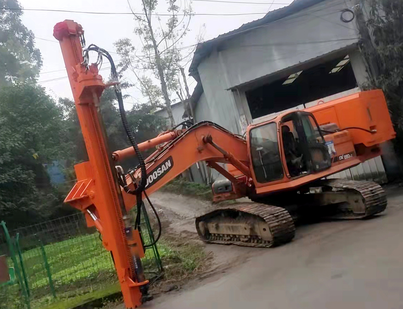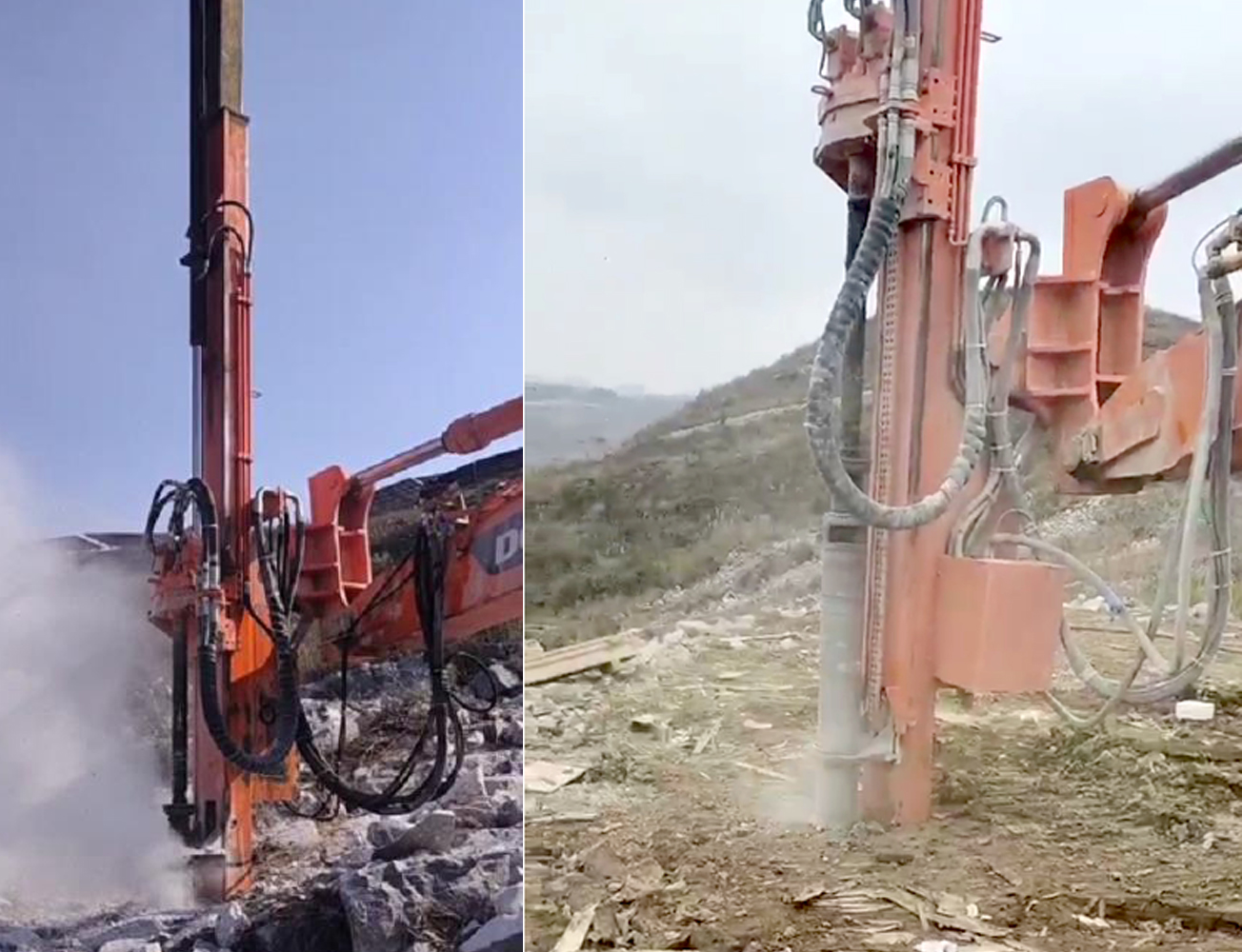 億山挖改潛孔鉆機各系列產品,廣泛適用于花崗巖、石灰石、大理石、火山石、青石、玄武巖、頁巖、砂巖、風化巖、泥巖等所有巖石的各種爆破前鉆孔作業;借助挖機的操作靈活性也可用于錨桿鉆孔以及孔徑較大的光伏孔;使用效率高于傳統的分體式潛孔鉆機。具操作簡易,設計人性化,感觀直接,實現挖掘機一機多用等特性。
