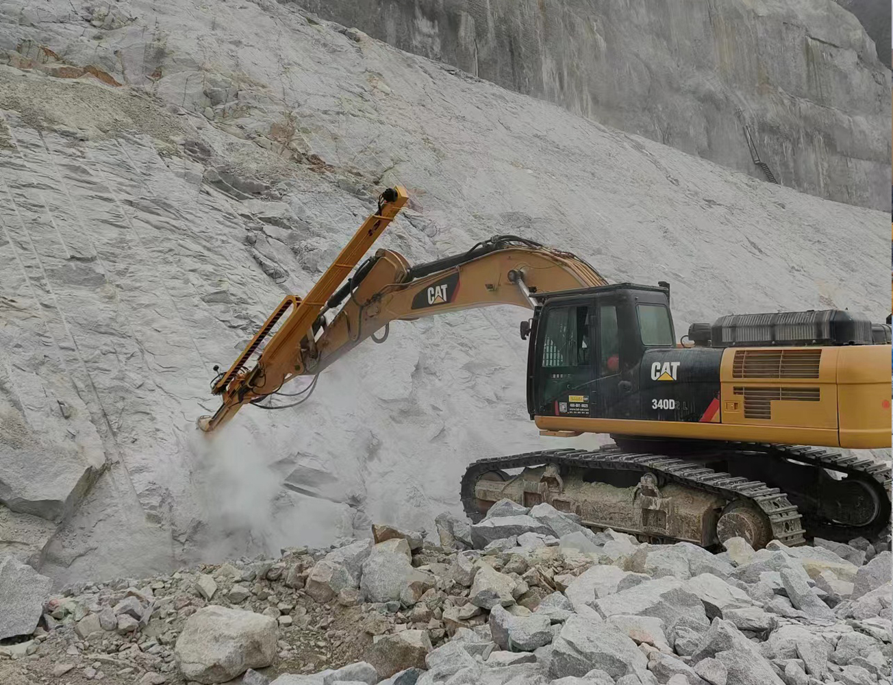 億山ES300挖改全液壓鑿巖機,廣泛適用于花崗巖、石灰石、大理石、火山石、青石、玄武巖等硬度較高的堅巖石的各種爆破前鉆孔作業(yè)(硬度F大于6級);可以借助挖機的操作靈活性用于錨桿鉆孔;也遠遠低于一體式鑿巖鉆機的采購價格。具操作簡易,設(shè)計人性化,感觀直接,實現(xiàn)挖掘機一機多用等特性。