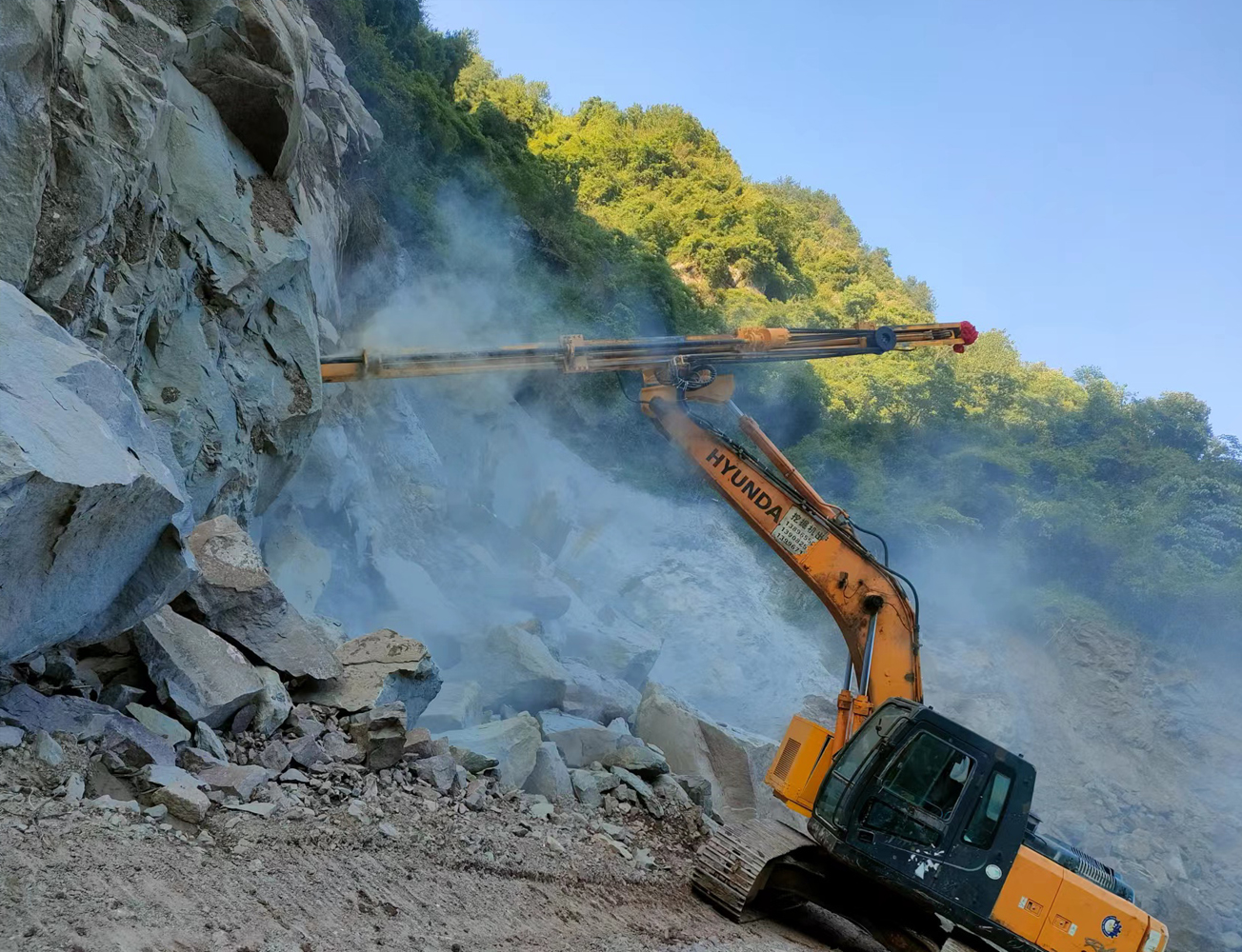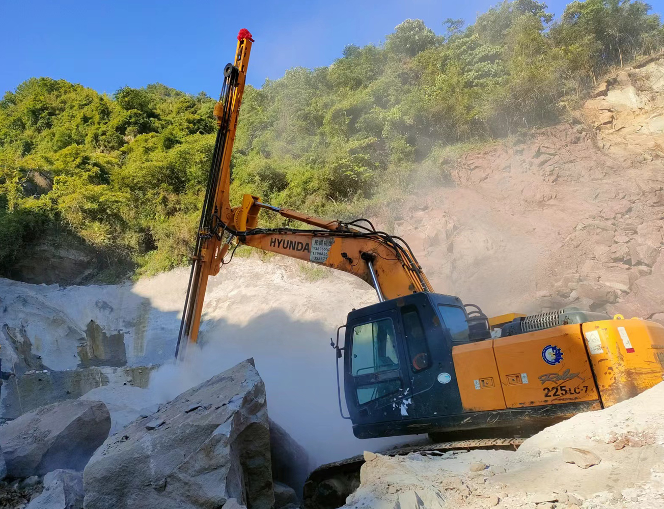 挖機(jī)改鉆機(jī)為您開(kāi)啟了新的施工方法。挖斗+破碎錘+切削鉆機(jī)+鑿巖鉆機(jī)+潛孔鉆機(jī),一機(jī)多用,為您降低成本。無(wú)論您是從事采石業(yè)、采礦業(yè)、土建工程、鋼鐵工業(yè)、隧道工程或路橋工程,在許多傳統(tǒng)方法失效或成本高的地方,您都可以借助這靈活、耐用、噪音小且震動(dòng)低的特種機(jī)器。