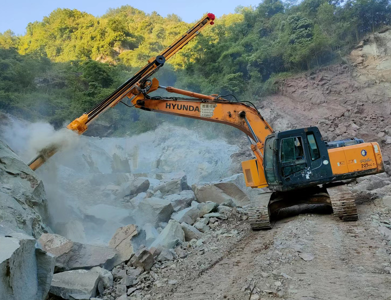 3、作業半徑擴大化 。因為挖掘機小臂不拆,它的作業半徑可以延長作業半徑2-3米,且仰角打孔、水平打孔、豎直打孔都可以實現。
