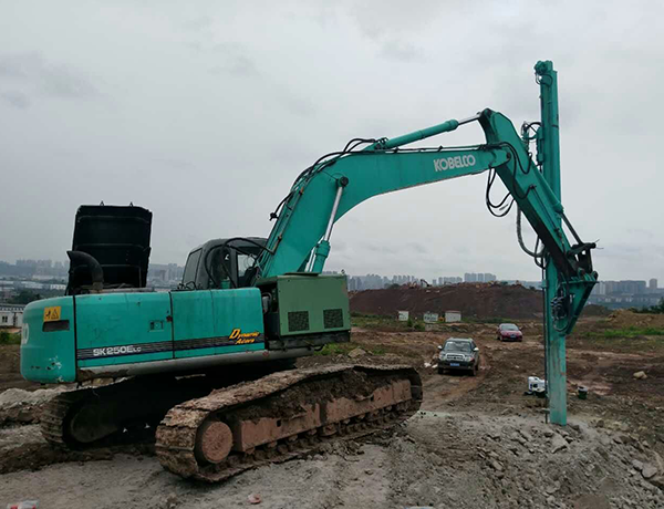 2、前后左右自由伸展,當(dāng)挖掘機在工地不平坦的情況下, 挖機手可根據(jù)位置不同調(diào)整鉆桿角度,保持90°垂直鉆孔。