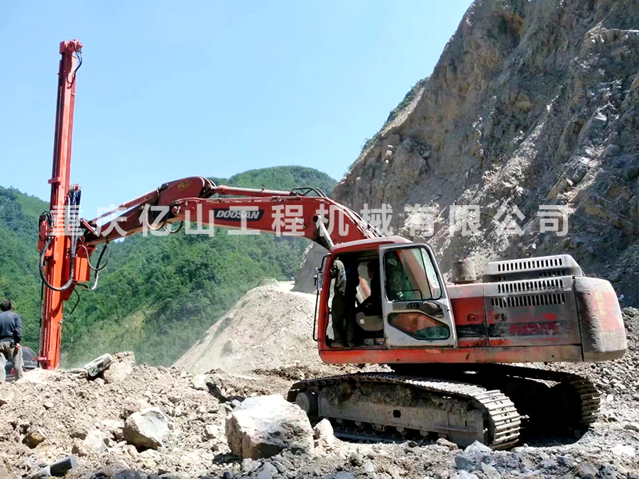 四川沐川-斗山挖機改全液壓鑿巖機(60-90孔5米)工地現(xiàn)場