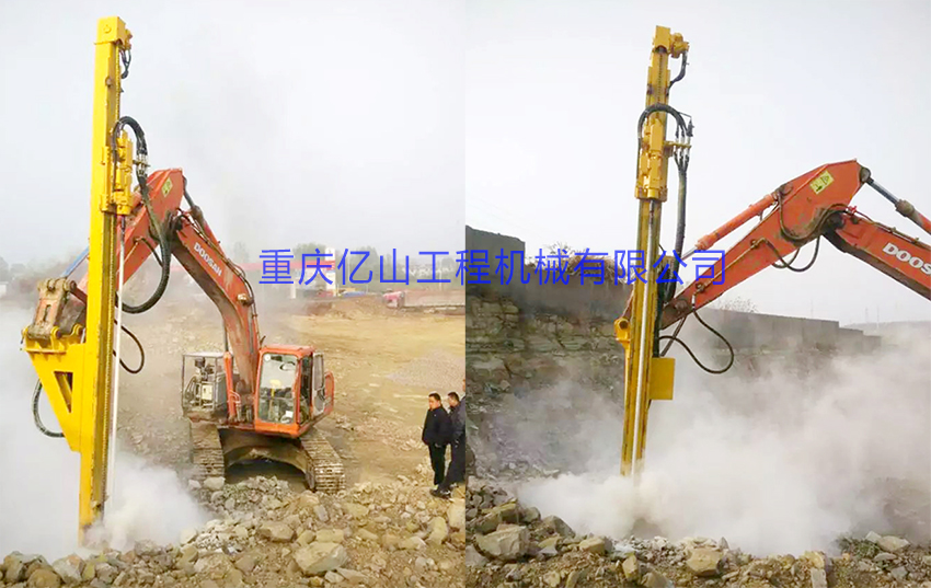 1、安裝拆卸方便。挖掘機小臂不用拆卸,不影響挖掘機自身功能,直接類似掛破碎錘一樣,管路系統都可以共用,真正實現一機五用并互換:挖土、破碎錘、切削鉆、鑿巖機、潛孔鉆。拆卸時間和換斗時差不多,約10-20分鐘。