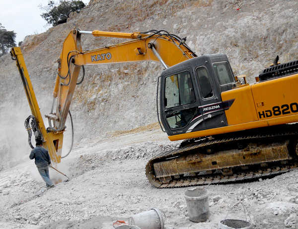 億山ES300挖改全液壓鑿巖機,廣泛適用于花崗巖、石灰石、大理石、火山石、青石、玄武巖等硬度較高的堅巖石的各種爆破前鉆孔作業(硬度F大于6級);可以借助挖機的操作靈活性用于錨桿鉆孔;也遠遠低于一體式鑿巖鉆機的采購價格。具操作簡易,設計人性化,感觀直接,實現挖掘機一機多用等特性。